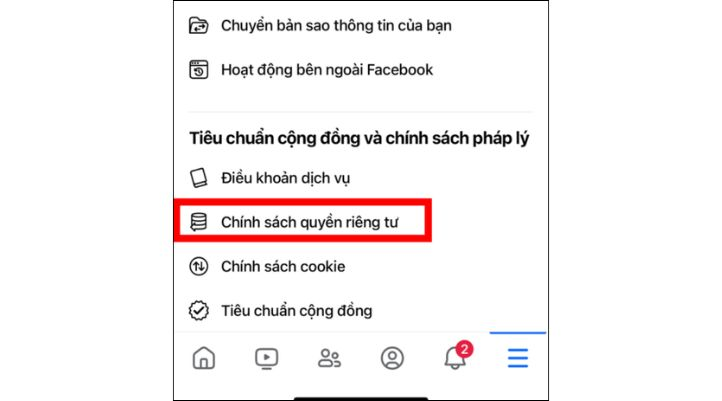 Truy cập Cài đặt & quyền riêng tư → chọn Chính sách quyền riêng tư