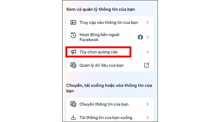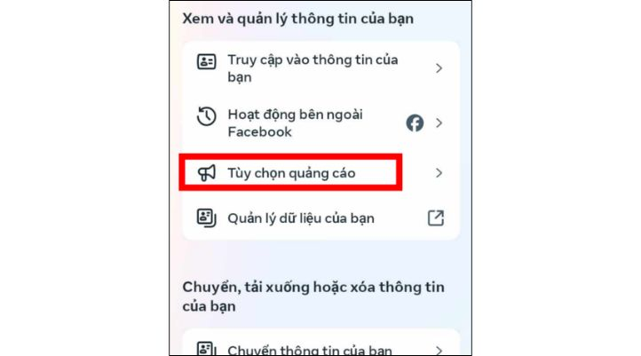 Cuộn xuống và tìm mục Tùy chọn quảng cáo