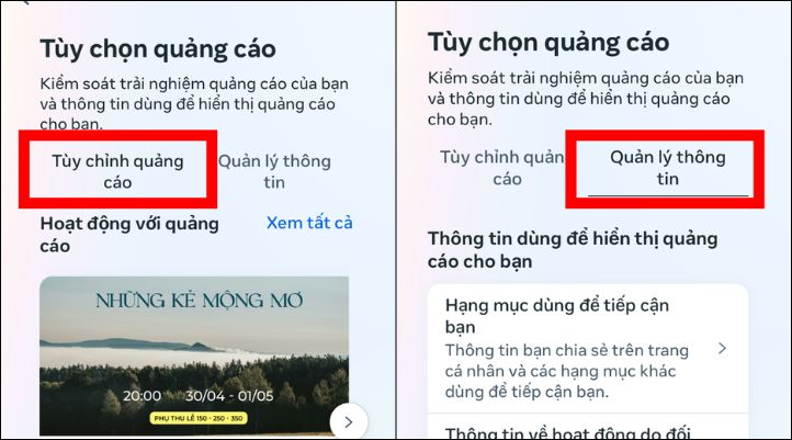 Cách 1: Tùy chỉnh quảng cáo ngay trong ứng dụng Facebook